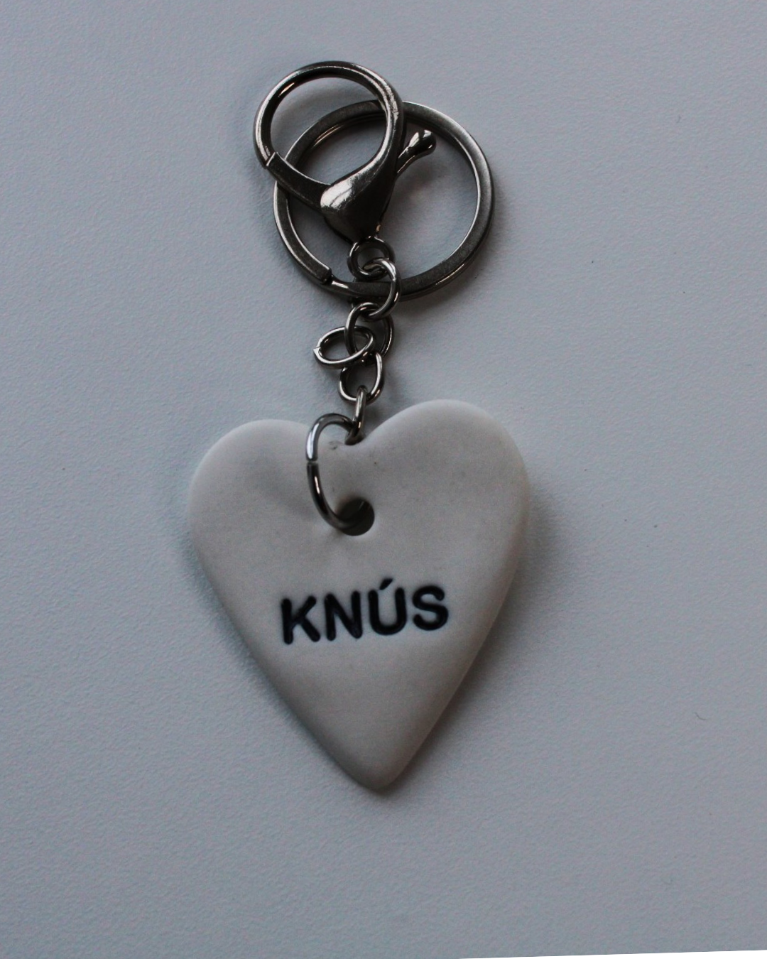 Hjartaknús er lyklakippa með keramikhjarta sem er skapað af keramikhönnuðinum Valdísi Ólafsdóttur, eða Dísu, sem hannar undir merkinu Litlu hlutir lífsins. www.litluhlutirlifsins.is